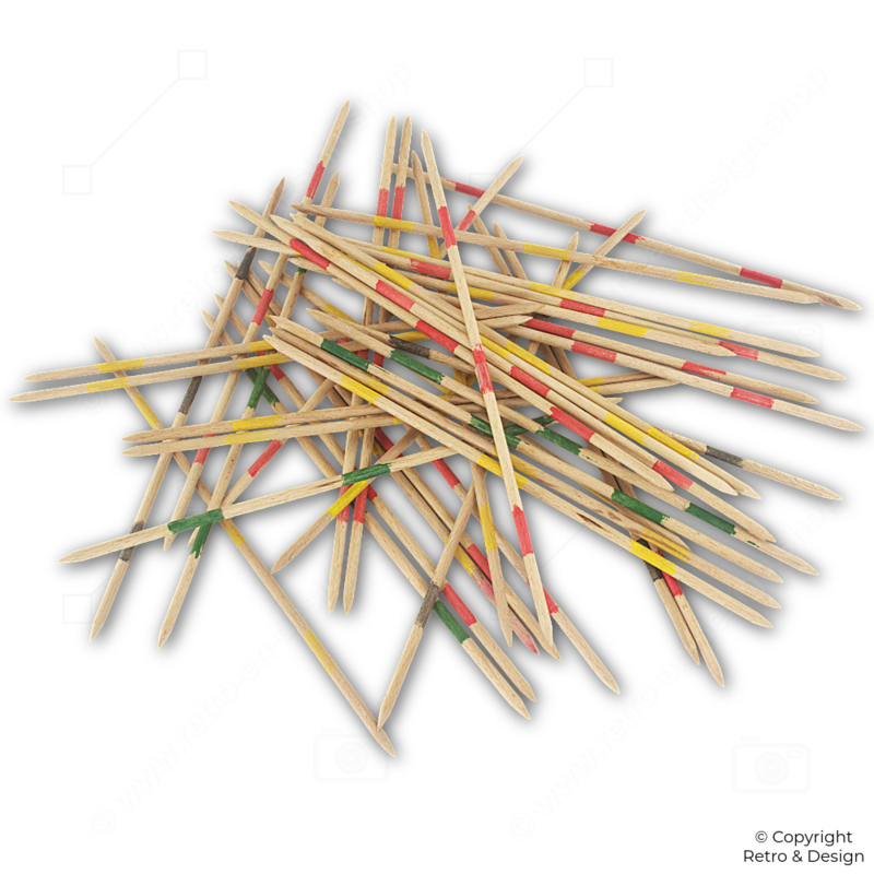 β’ Traditional Mikado game where players take turns removing wooden sticks without disturbing the others.