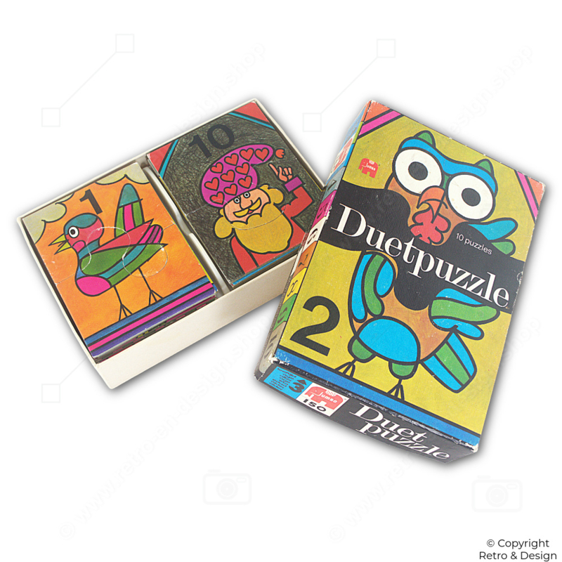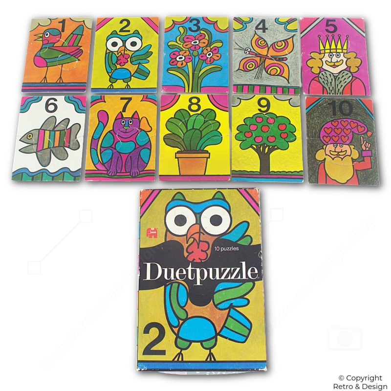 • Charming vintage Duet Puzzles from Jumbo, specially designed for the very young. The set includes ten simple puzzles, each made up of only two pieces.