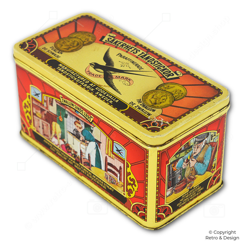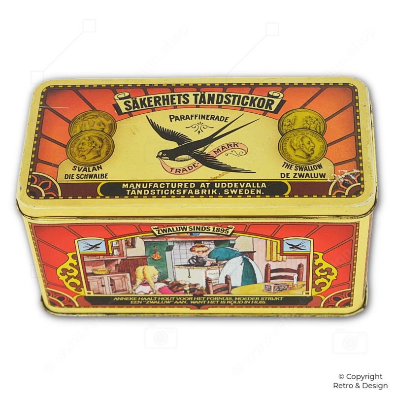 The safety match was developed in 1844 by Swedish chemist Gustaf Erik Pasch. Industrial production followed in 1855 thanks to Johan Edvard Lundström and Alexander Sjöberg. Sweden’s match heritage is known for quality and safety—nicely reflected in this nostalgic Zwaluw tin.