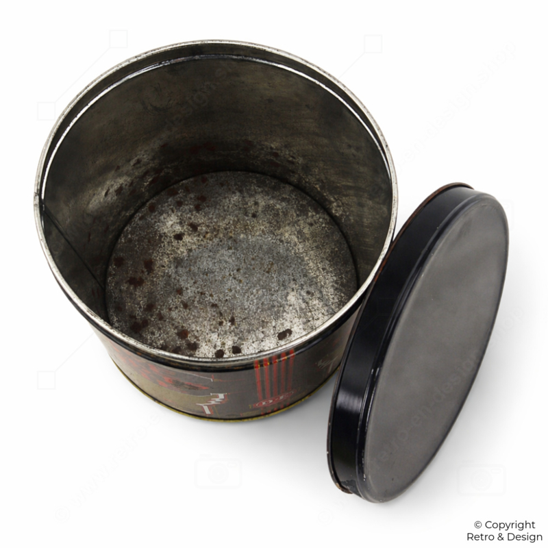 Thanks to its generous size, this tin is also ideal as a decorative storage container for coffee, biscuits, or kitchen items — a beautiful piece of nostalgia for collectors of vintage advertising tins.