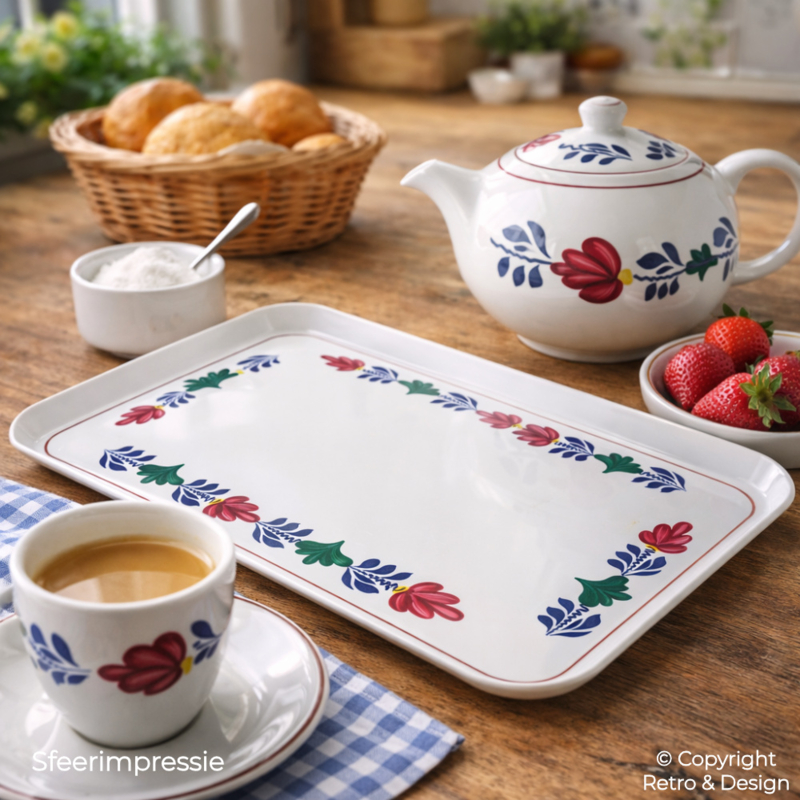 The combination of the well-known design and functional form makes this tray not only useful, but also a charming addition to any kitchen or dining room. A lovely piece for lovers of nostalgic tableware and classic Dutch coziness.