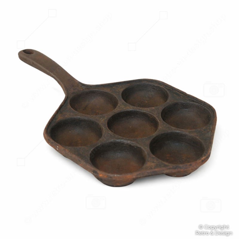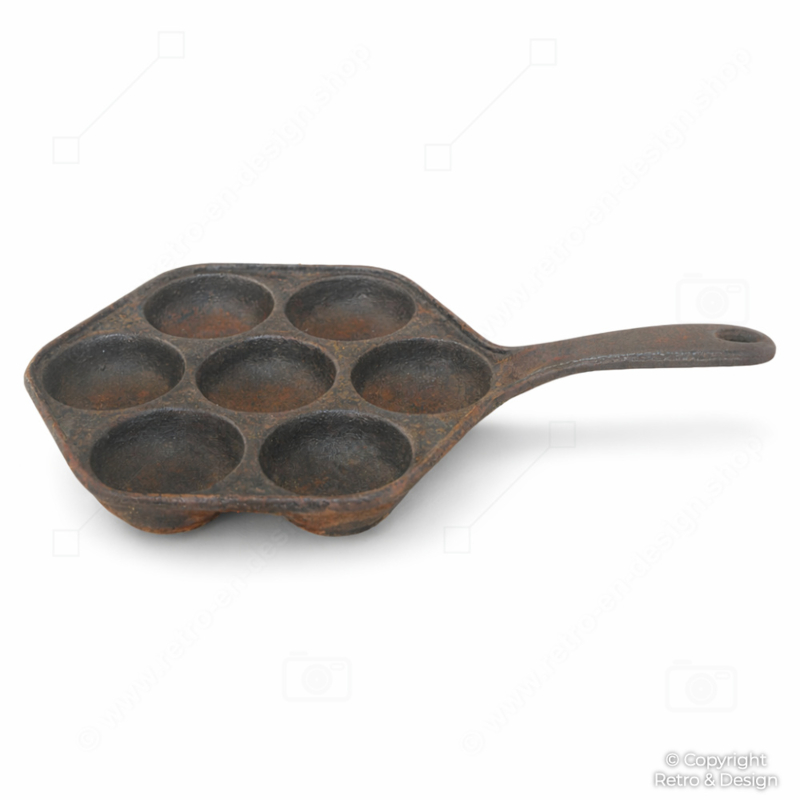 Vintage Cast Iron Poffertjes Pan – 7 Wells – Rustic Patina – Brocante Kitchen Decor