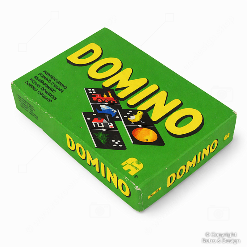 Fun and educational vintage picture domino game by Jumbo from the 1960s. This classic game combines recognizable images with dots and is specially designed to help young children learn patterns through play.
