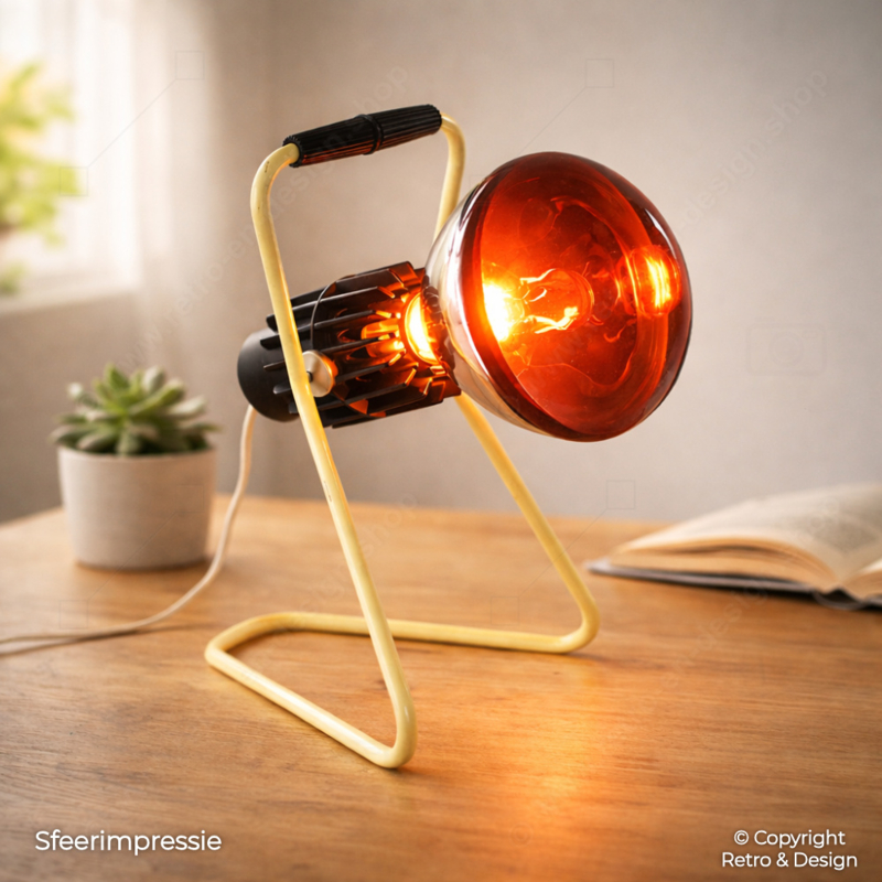 Vintage Philips Infraphil KL2901 infrared lamp, produced between 1946 and 1965. This rare model is known as the “paperclip” design due to its distinctive shape. Functional, decorative, and a true eye-catcher in any retro interior.