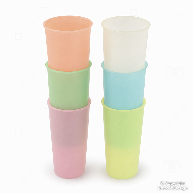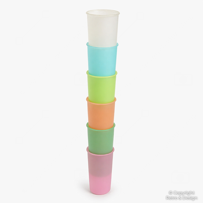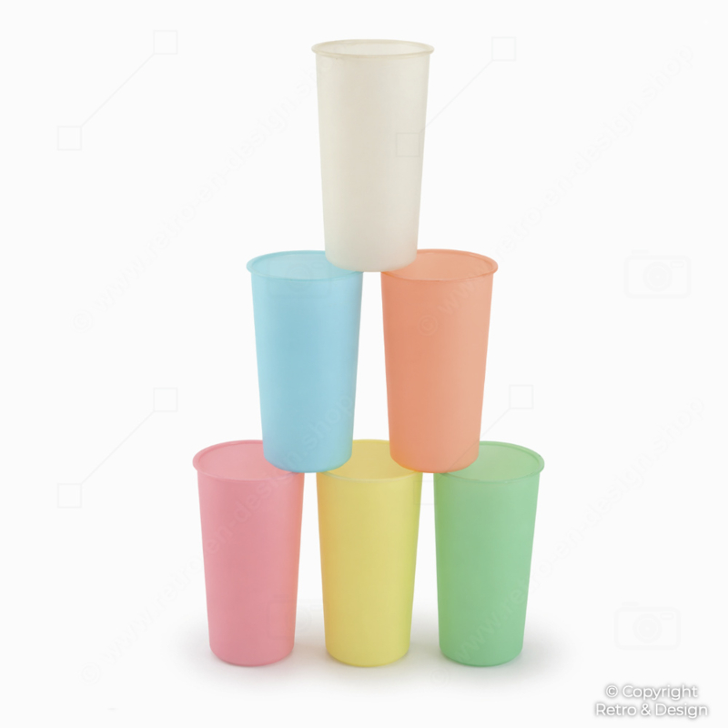 Cheerful set of 6 vintage Tupperware tumblers in soft pastel colours. Lightweight, durable, and perfect for everyday use, children, or a summer picnic.